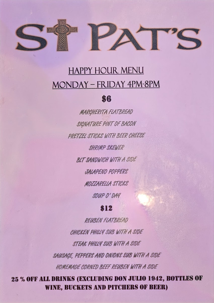 Welcome to St. Pat's Irish Pub, where vibrant local culture meets delectable comfort food! Nestled in Deerfield Beach, this pub's menu is a celebration of Irish-inspired classics and crowd-pleasing favorites that satisfy any palate. Start your culinary journey with a towering Loaded Nacho appetizer or indulge in Jalapeno Poppers paired with sweet chili sauce. For something classic, don’t miss their Soft Pretzel Sticks served with homemade beer cheese.